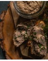 Czarny indyk z gruszką to pasztet, w którym szlachetne mięso z ekologicznego czarnego indyka z naszych gospodarstw w Beskidzie Niskim łączy się z karmelizowaną, świeżą gruszką i przyprawami korzennymi. To połączenie delikatności i subtelnej słodyczy nadaje pasztetowi wyjątkowy, elegancki charakter. Dzięki dopracowanej recepturze naszej szefowej kuchni Oli, pasztet zachwyca głębią smaku i naturalną harmonią składników. Idealny na wyjątkowe okazje i wykwintne spotkania.